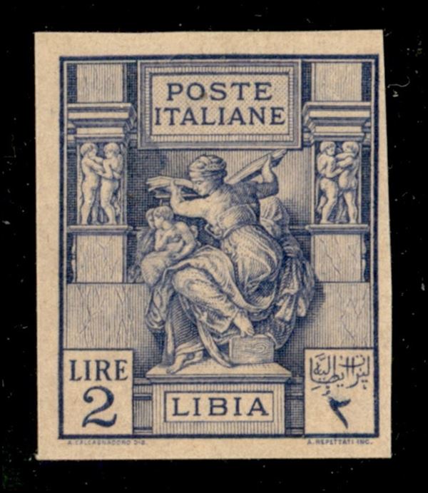 1924 - Prova di Macchina - 2 lire Sibilla (P43) di colore diverso - molto raro - senza gomma - cert. AG