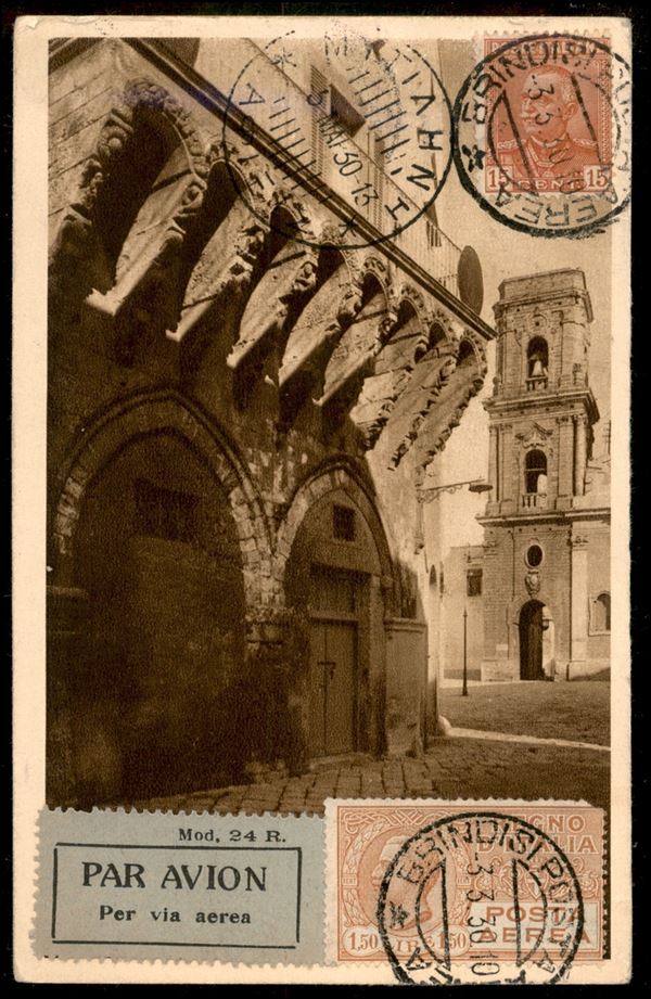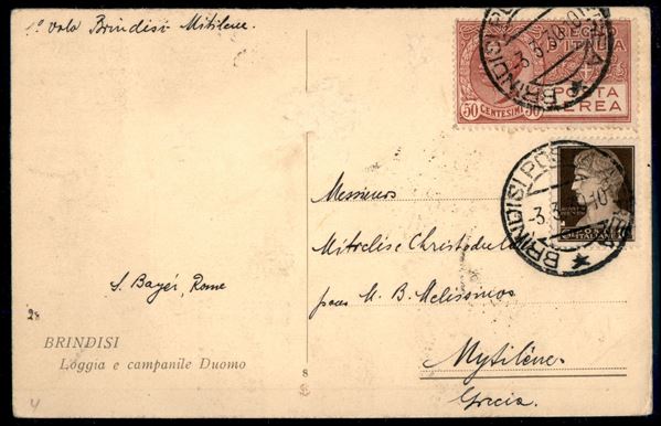 1930 (19 febbraio) - Brindisi Mitilene - AEI Volo Inaugurale - Longhi 2085 - rara cartolina tra i 35 del dispaccio