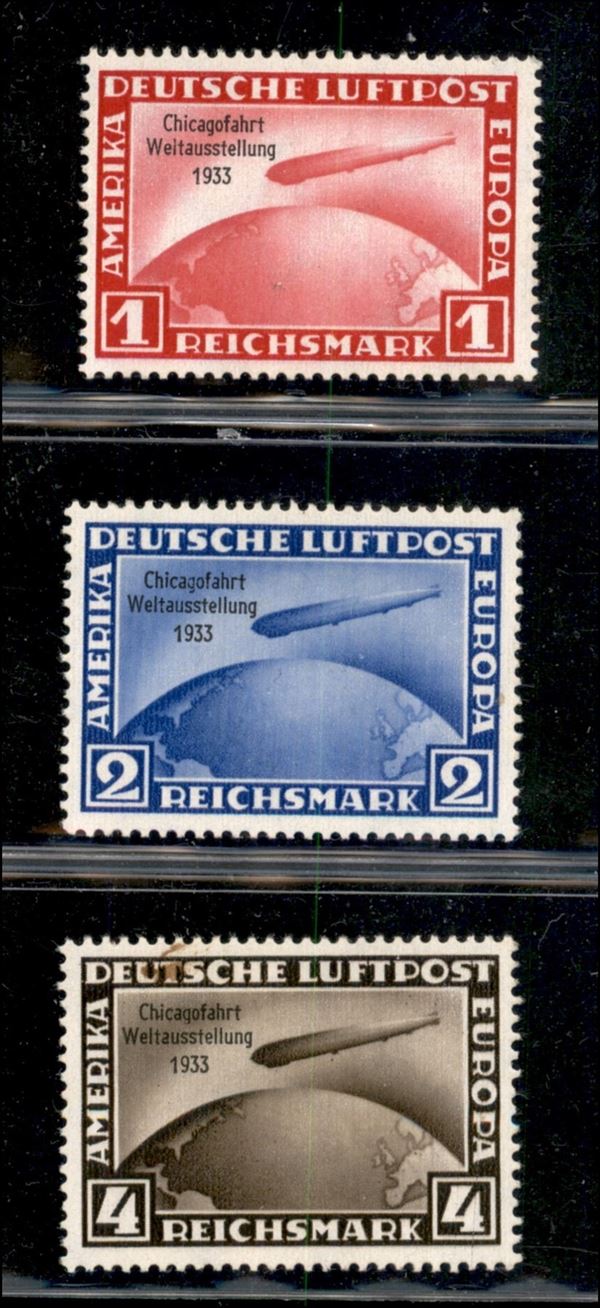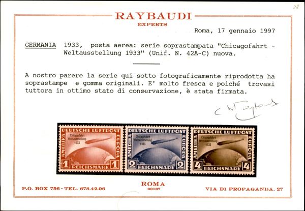 1933 - Zeppelin Chicagofahrt Weltausstellung (496/498) - serie completa - gomma originale - cert. Raybaudi