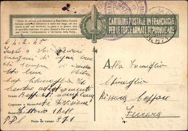 1943/1944 - Propaganda - Soldati d'Italia (Arrasich 342) - fori di punti metallici - usata