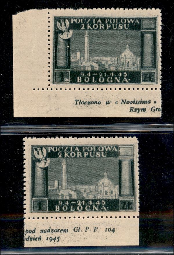 1946 - Due 1 zloty (11) bordo e angolo di foglio con iscrizioni - gomma integra (con imperfezioni)
