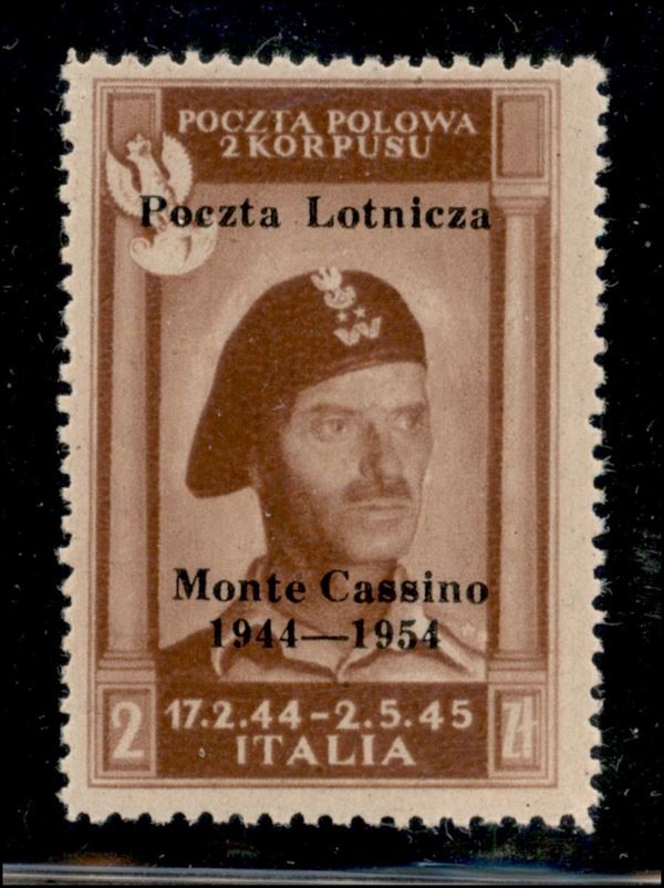 1954 - Governo Polacco di Londra - 2 zloty (1 - varietà) con soprastampa in alto - gomma integra - non catalogato