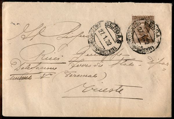 40 cent Michetti (8) isolato su busta da Bengasi a Trieste del 27.1.22