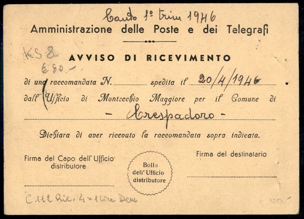 Due cartoline postali di Regno e RSI usate con valore ricoperto