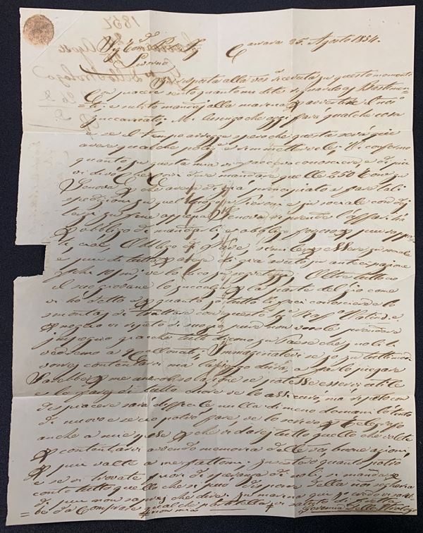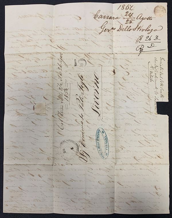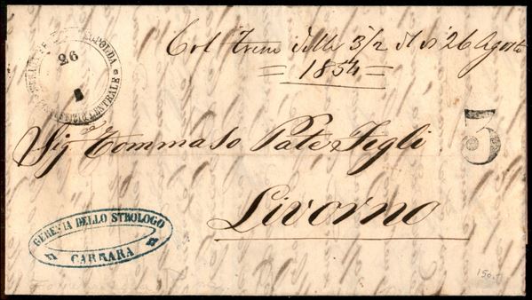 Forwarded - lettera da Carrara a Livorno del 25.8.54 via Pisa Uffizio Centrale/Strada Ferrata Leopolda