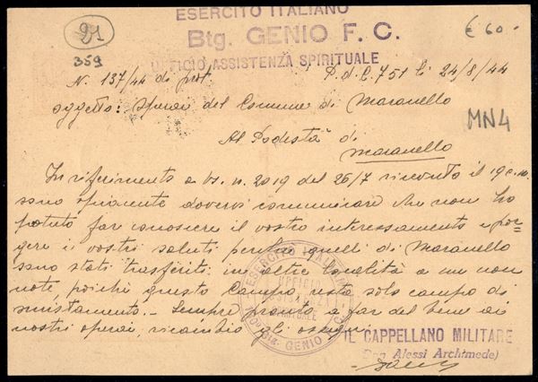 Giovani d'Italia (88/2) - cartolina postale in franchigia dalla Posta da Campo 751 a Modena del 27.8.1944