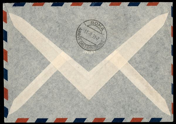 Imperiale (11 + 13/16) - cinque valori su aerogramma FDC da Napoli a Roma del 10.3.30 - uso precedente la data d'emissione (12 marzo)