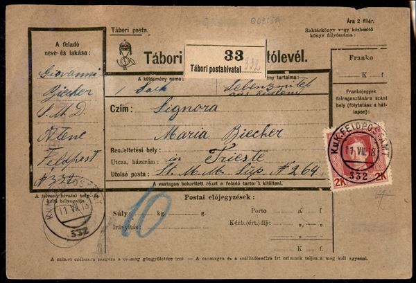 KUK Feldpostamt 332 - bollettino per Trieste del 11.7.1918
