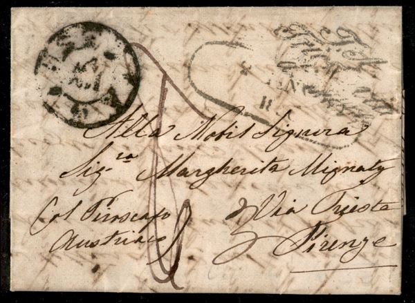 Lettera da Corfù a Firenze via Trieste con Piroscafo Austriaco del 2.1.1850