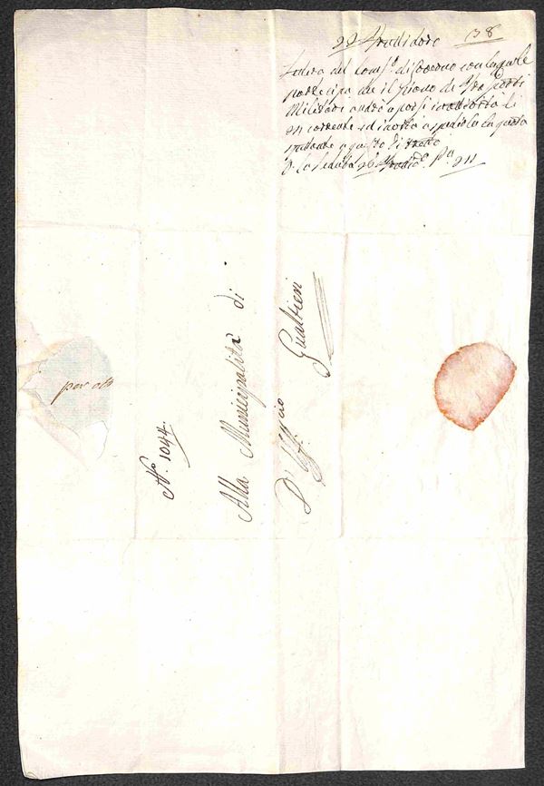 Repubblica Cisalpina - lettera da Reggio a Gualtieri del 12 Fruttidoro Anno 9