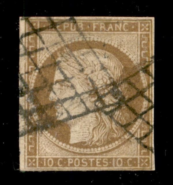 1849 - 10 cent (1) usato (griglia muta) - riparato in alto