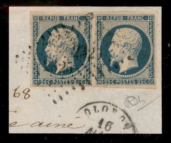 1853 - 25 cent (14) - coppia orizzontale usata su frammento