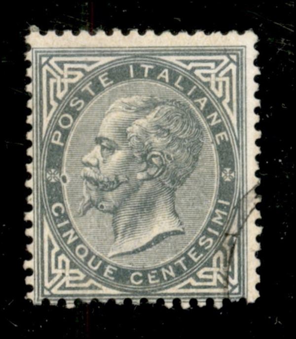 1863 - 5 cent tiratura di Torino (T16) con due macchie di colore all'interno della cornice - usato - cert. Diena