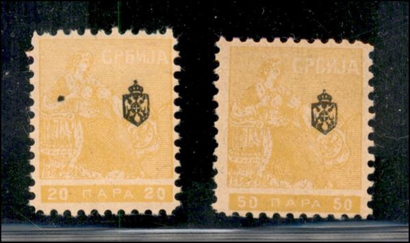 1911 - 20 para (111) + 50 para (114F - giallo) - gomma originale