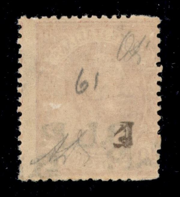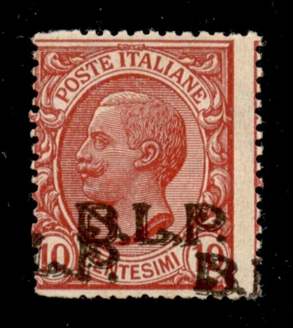 1923 - 10 cent (13Bda - varietà) doppia soprastampa diritta e obliqua + decalco parziale della B (non catalogato) + salto di dentellatura a sinistra - gomma integra - Diena (1.200+)