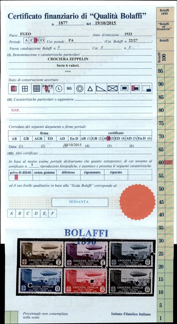 1933 - Crociera Zeppelin (22/27) - serie completa - gomma integra - molto bella e fresca - cert. Bolaffi 60%