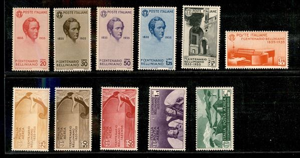1935 - Centenario Bellini (388/393+ 90/94 aerea) - emissione completa - gomma integra