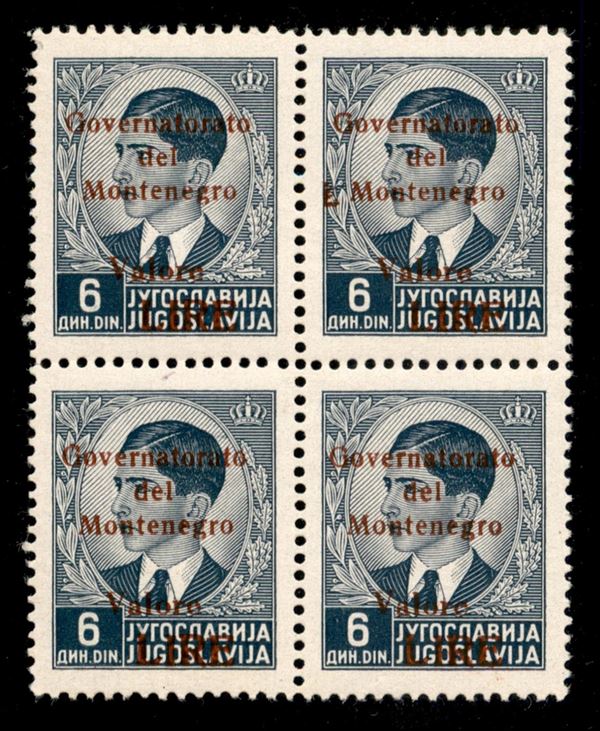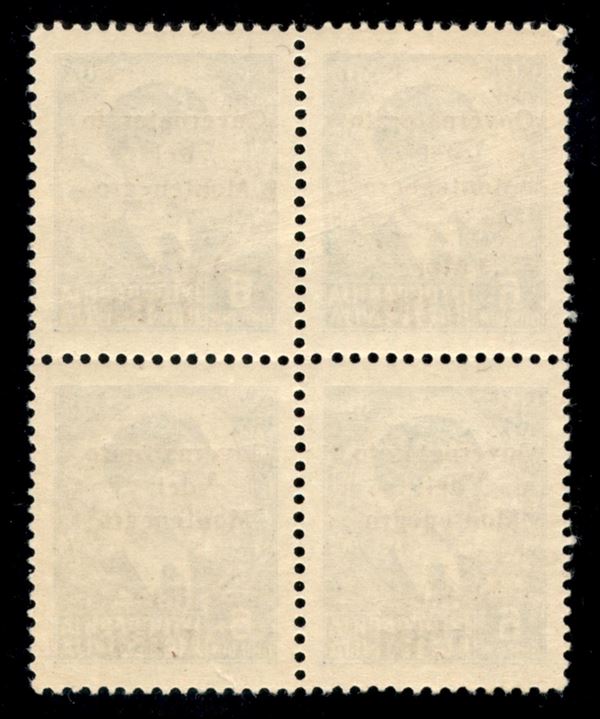 1942 - 6 din (56+56f+56+56) in quartina quartina - spazio tipografico prima di M (a destra in alto) - gomma integra (555+)