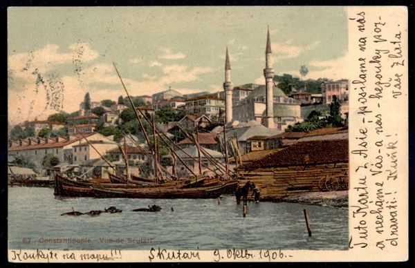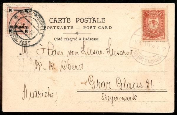 Affrancatura mista Turchia/Levante Austriaco su cartolina da Scutari a Graz via Costantinopoli del 9.10.1906