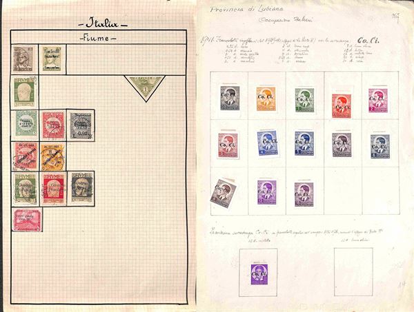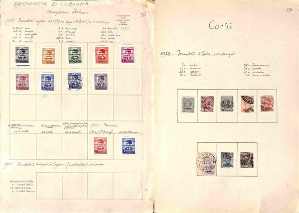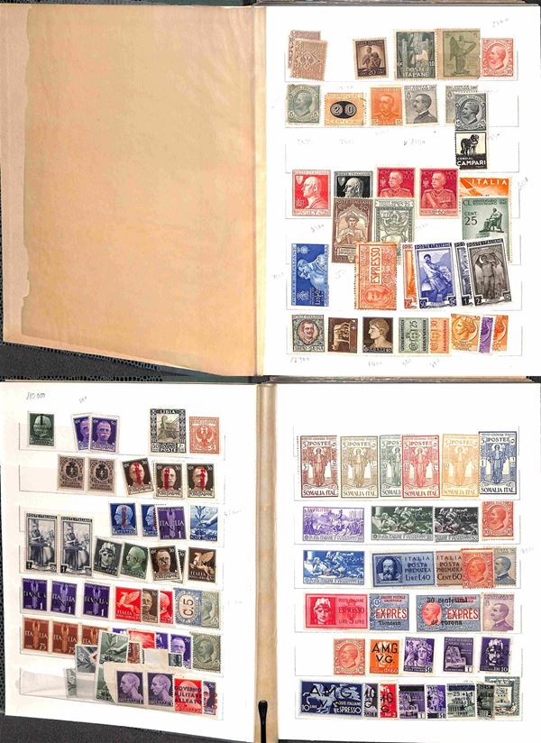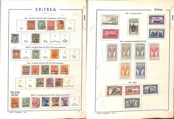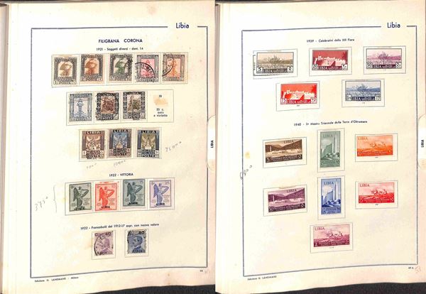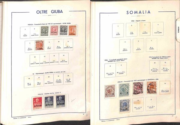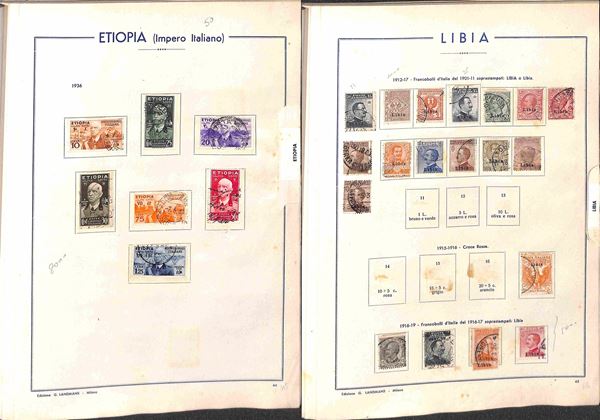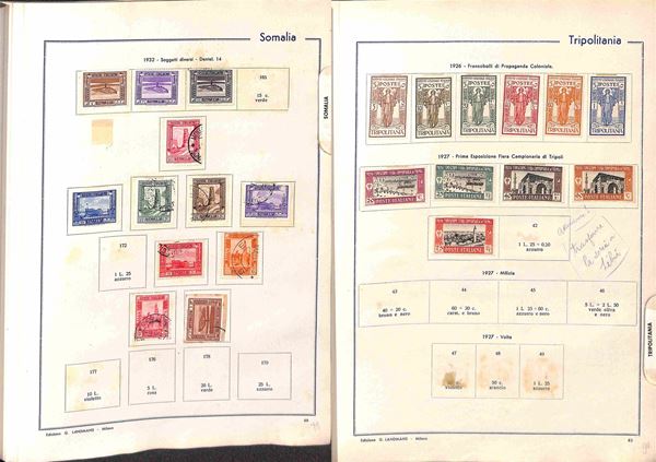 AREA ITALIANA - 1860/1945 - Interessante accumulazione del periodo con buona rappresentazione delle Colonie in vecchio album Landmans pił due piccoli album e alcuni fogli artigianali con Regno Repubblica e Occupazioni - merita esame