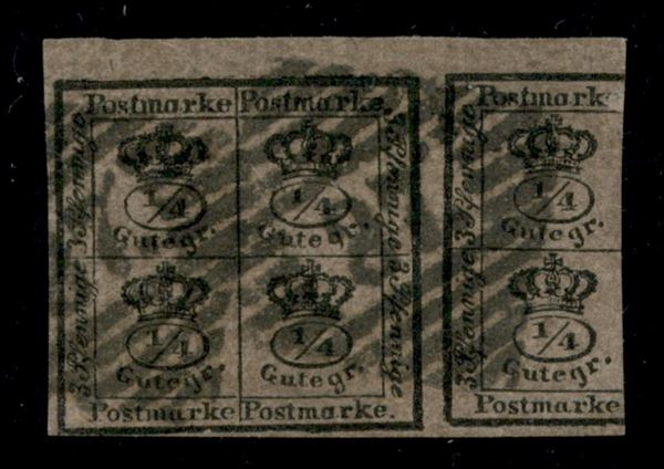 Braunschweig - 1857 - Blocco di 4 1/4 + metà (9) - usato