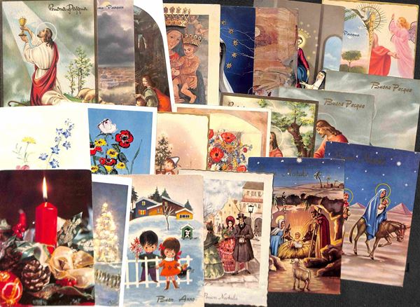 CARTOLINE - Augurali (Pasqua/Natale) - insieme di 90 cartoline formato grande nuove - da esaminare