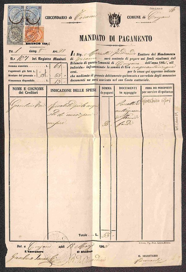 Coppia del 20 cent Ferro di Cavallo (24) + 5 cent e 10 cent (T16 + T17) su mandato di pagamento del 18.3.65