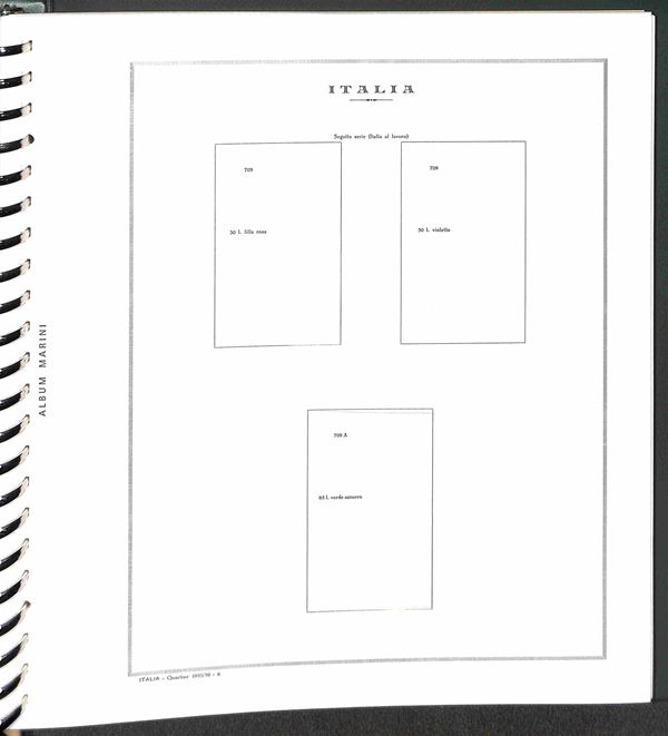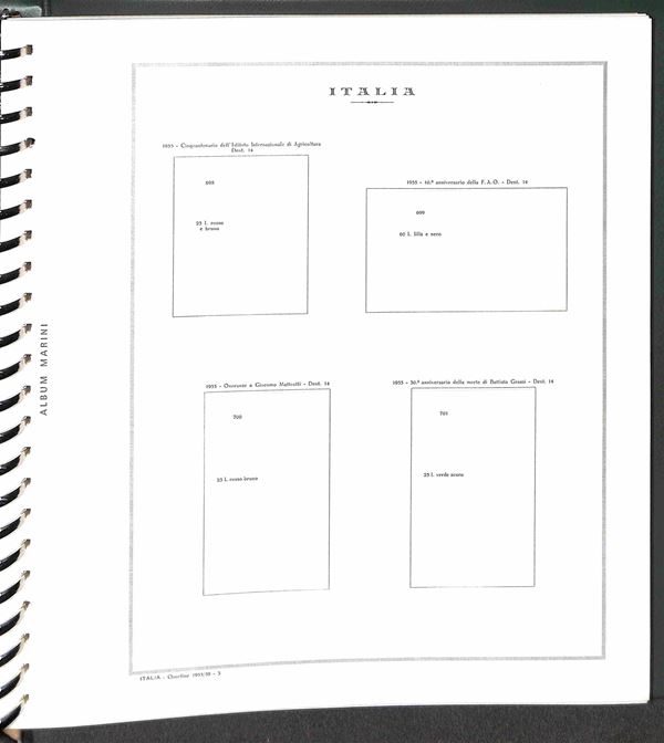 MATERIALE FILATELICO - Repubblica 1945/1959 - 2 album Marini completi di custodia e tutti i fogli compresi Servizi per collezione di quartine - ottimo stato di conservazione