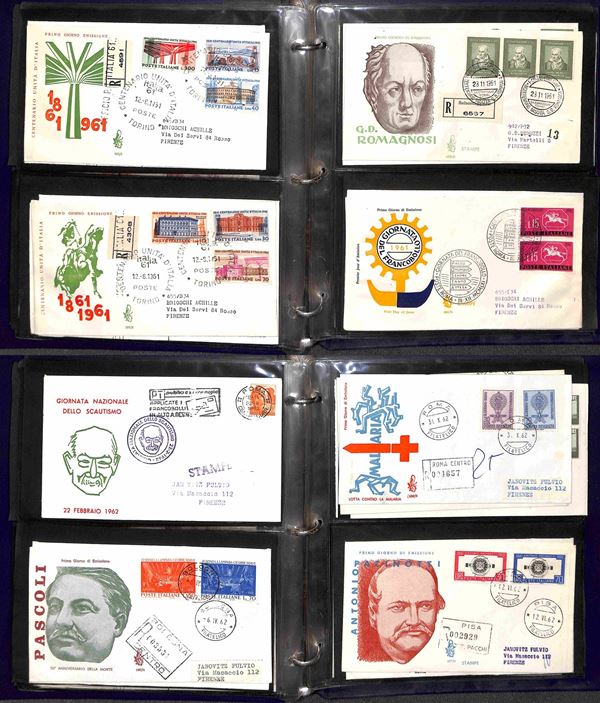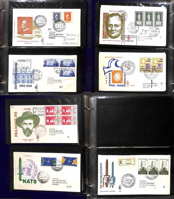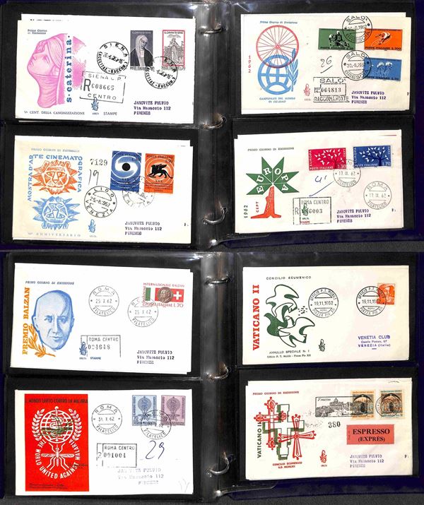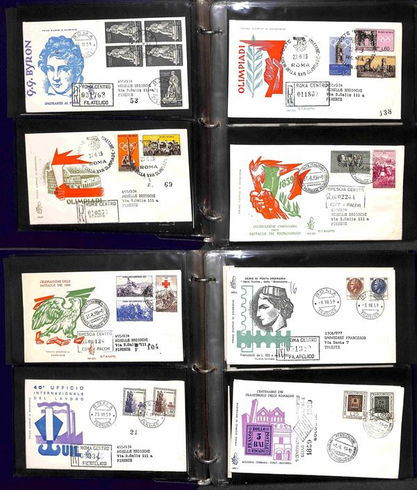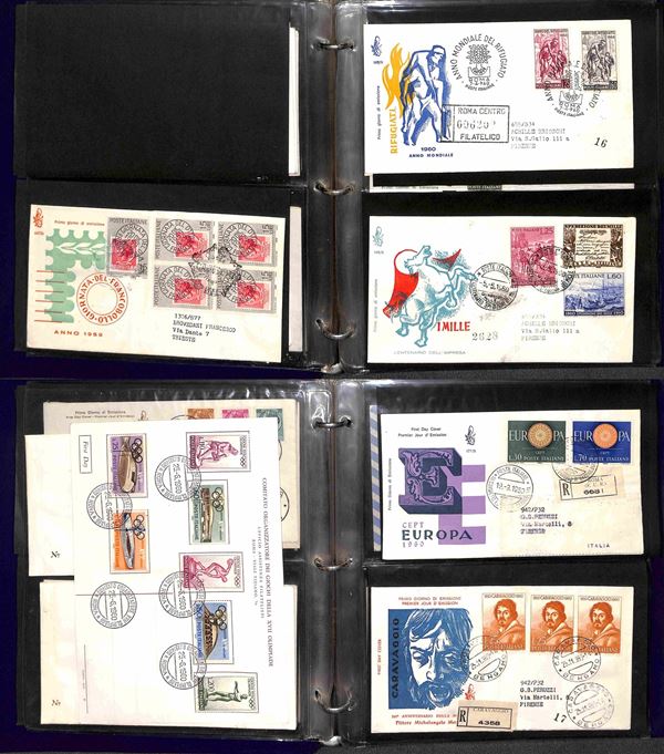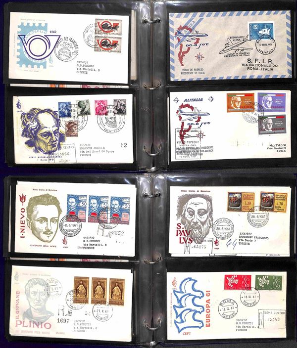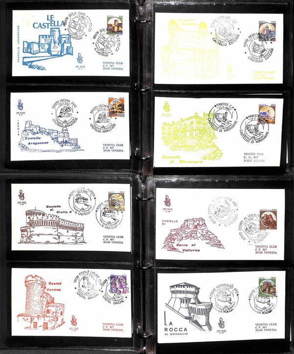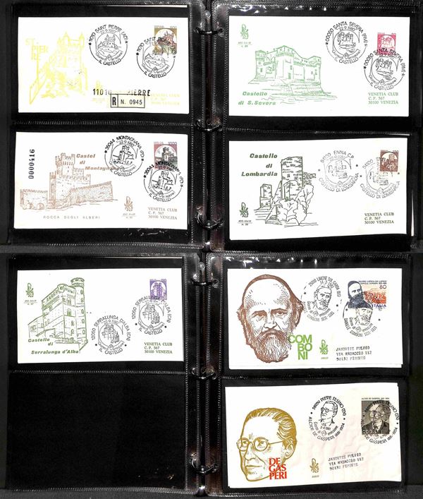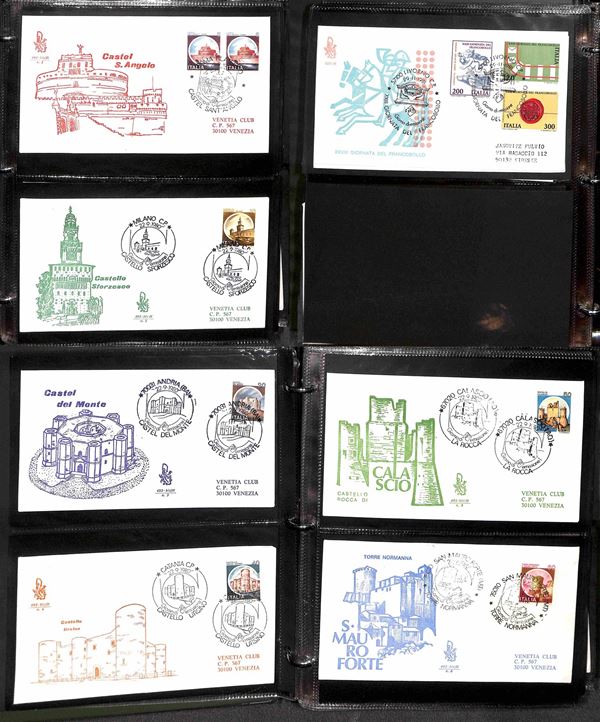 REPUBBLICA - 1957/1991 - Collezione di FDC Venetia Club pressochè completa del periodo (poche mancanze nel primo periodo - non presenti Gronchi + Minifogli Alti Valori) - notati Castelli con annulli singoli e minifogli Milan Inter e Samp - moltissime buone presenze - montata in 17 album raccoglitori + 1 album porta fogli - presenti moltissimi doppioni di altre emissioni - valore di catalogo oltre 2400 €