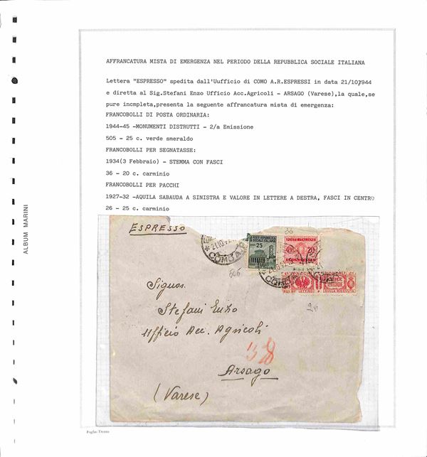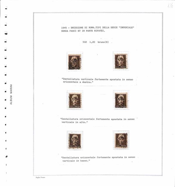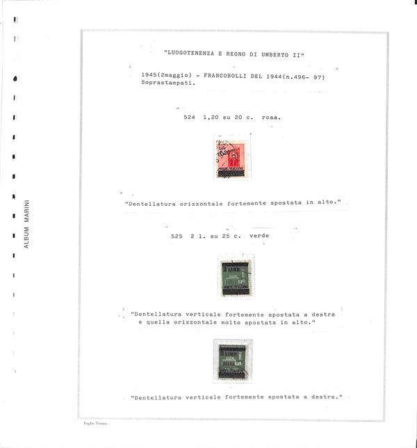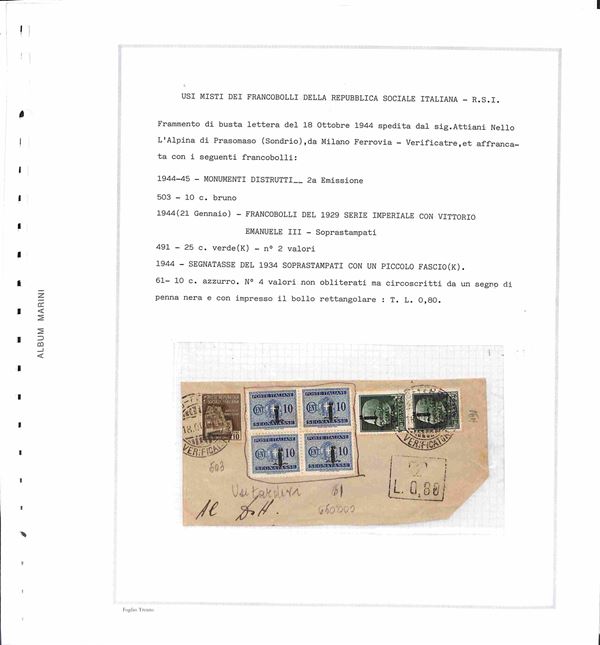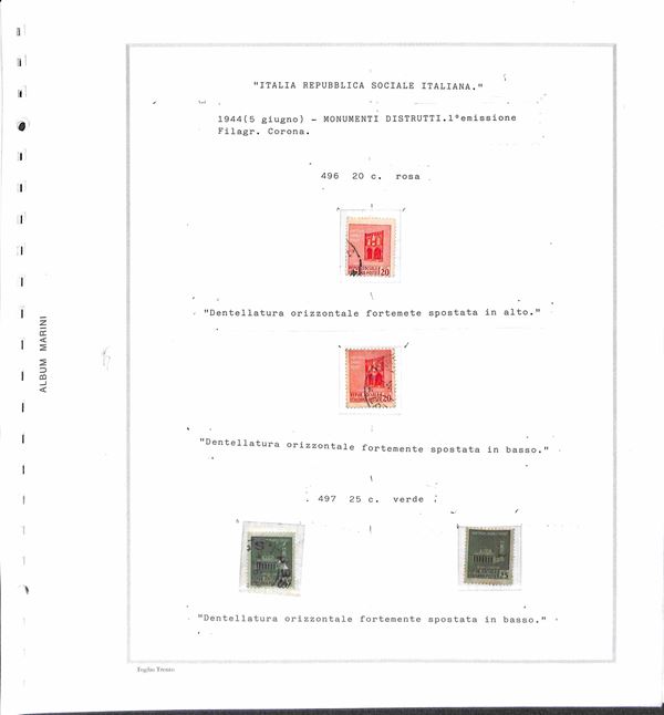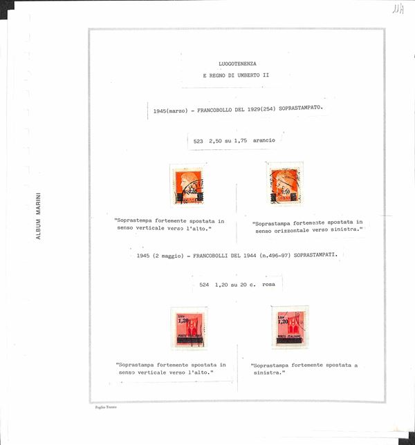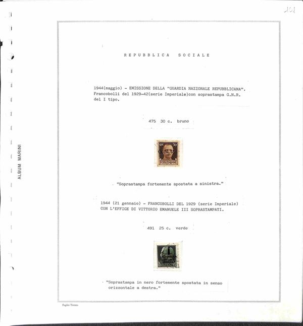 RSI / LUOGOTENENZA - 1943/1946 - Piccolo insieme studio di oltre 50 valori in prevalenza usati montati su fogli d'album Marini - da esaminare