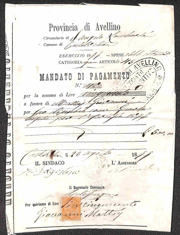 Uso fiscale - 10 cent (T17) su mandato di pagamento del 23.8.99 - R. Diena