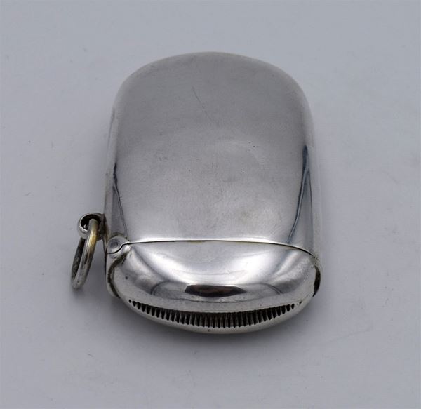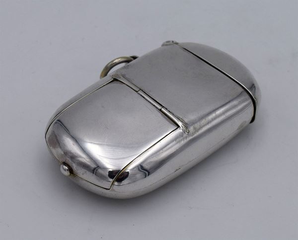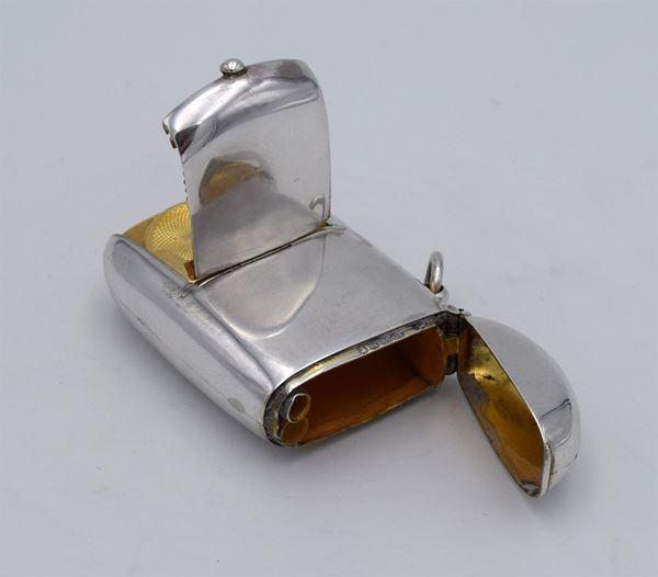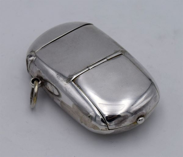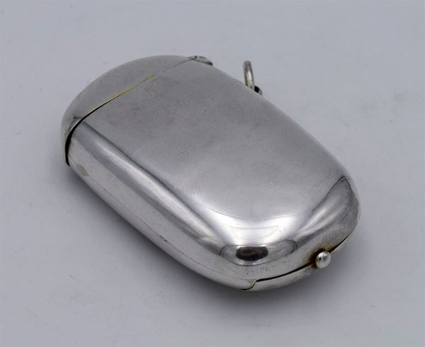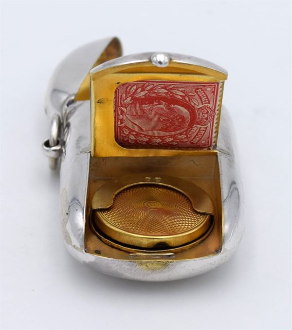 1887 - Birmingham - Bellissimo porta francobolli e fiammiferi tascabile dal design tipo "accendino" - doppio coperchio uno superiore a molla con lavorazione tipo seghettato sulla testa e interno dorato e uno laterale con 1 spazio per sterlina e 1 porta francobolli con interno dorato - molto bello e dal design moderno