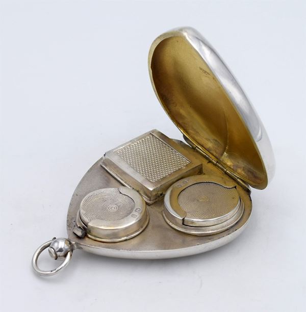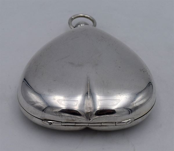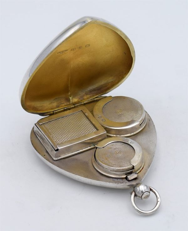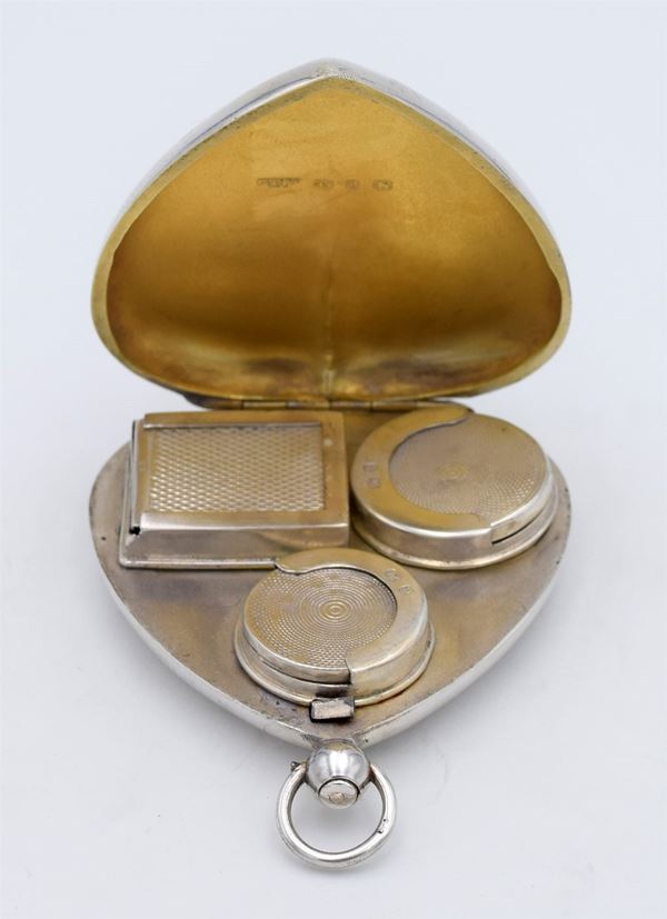 1898 - Birmingham - Splendida scatola modellata a forma di cuore con apertura a molla - all'interno 3 distributori per francobolli mezza sterlina e sterlina - bellissima