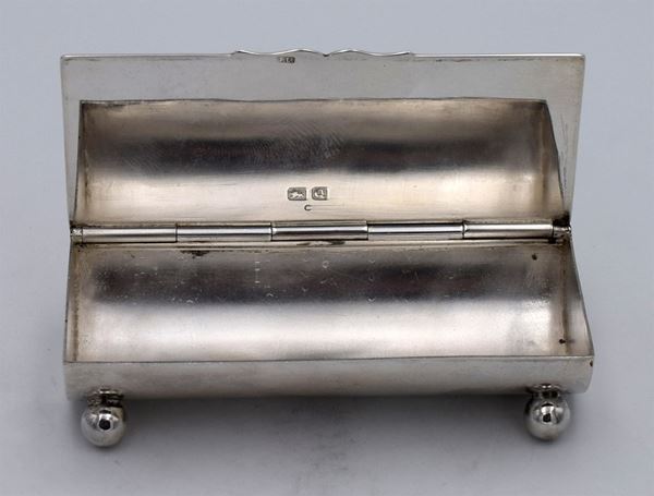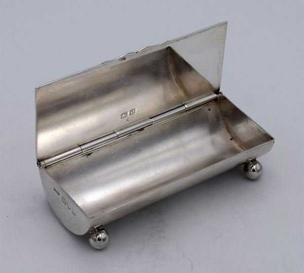 1899 - Chester - Scatola a forma di vaschetta con 4 piedini a forma di palla - coperchio a cerniera con all'interno uno spazio concavo
