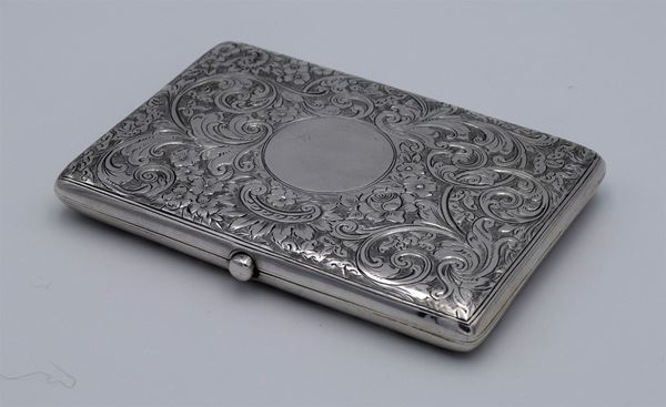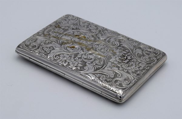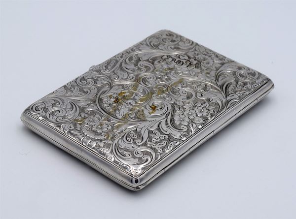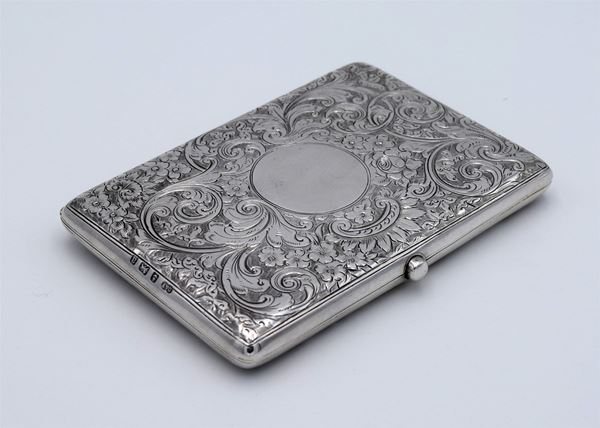 1900 - Birmingham - Scatola rettangolare con incisione a motivo floreale - apertura a molla tipo libro con interno in pelle - 7 taschine di cui 3 porta francobolli e un porta penna - molto bella