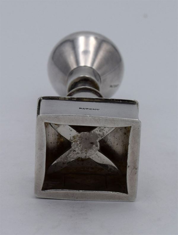 1902 - London - Distributore di francobolli di William Hornby marcato WH e PATENT - con il manico forma uno spruzzatore d'acqua per inumidire la busta prima dell'applicazione del francobollo affondando la maniglia e con lo stesso movimento si applica il francobollo da sotto - splendido e molto raro
