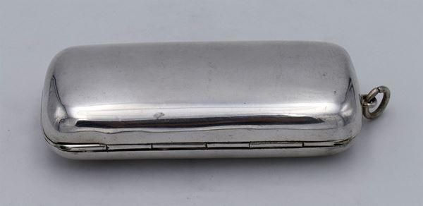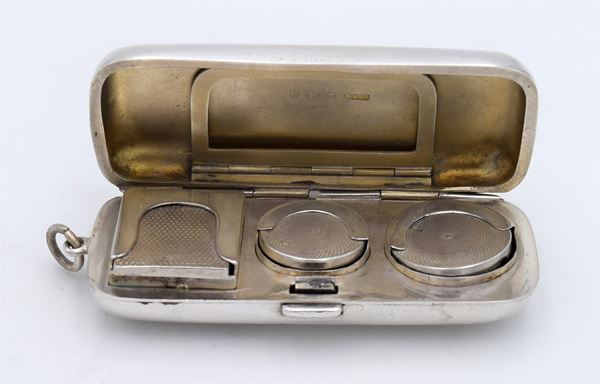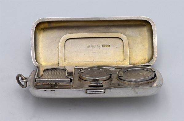 1904 - Birmingham - Scatola rettangolare ad angoli smussati con apertura a molla (tasto a pressione) - interno con da un lato molletta ferma carte e dall'altro 3 distributori per francobolli mezza sterlina e sterlina - molto bella