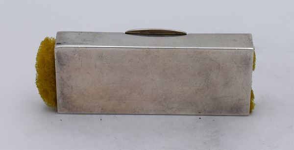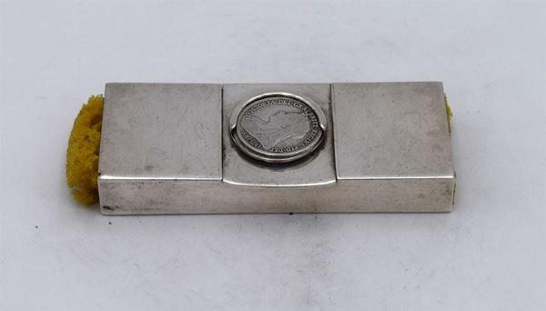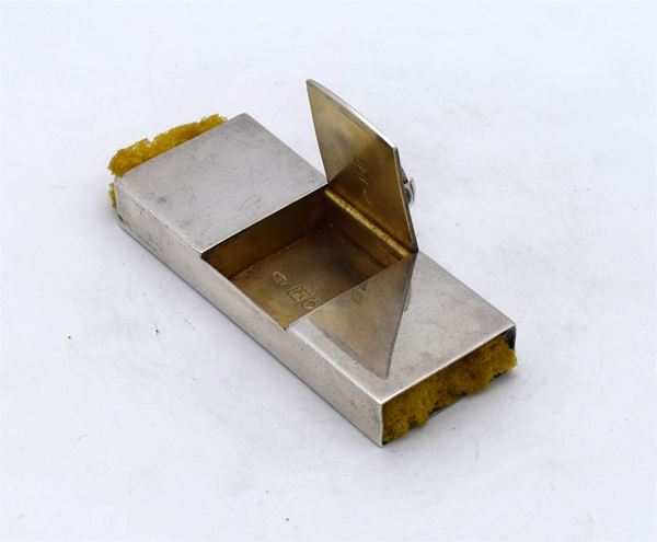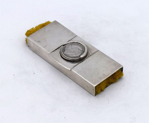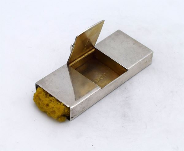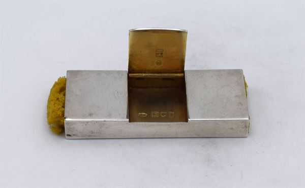 1906 - London - Piccola scatola rettangolare con 2 spugne ai lati e apertura a cerniera centrale sormontata da porta monete - incisione al retro "THORNHILL LONDON" - all'interno 1 spazio per francobolli - bella