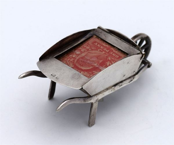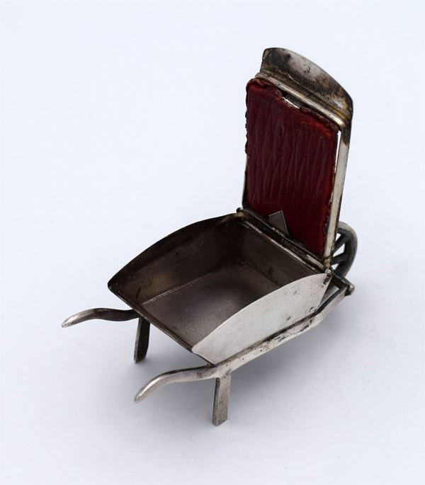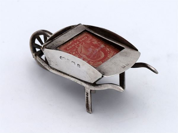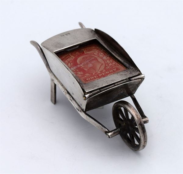 1907 - Birmingham - Incantevole scatola modellata a forma di "carriola" con compartimento singolo - coperchio con vetro apribile con 1 spazio concavo - bellissimo e raro esempio di design dell'epoca