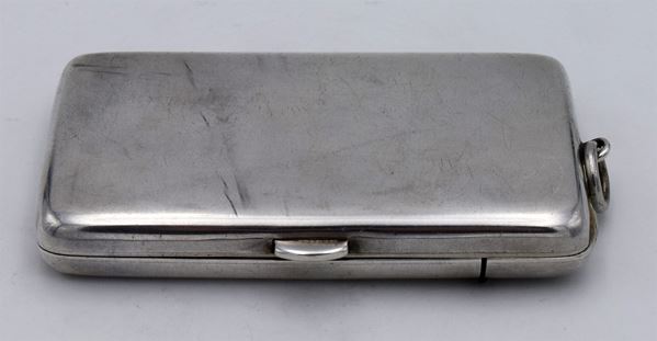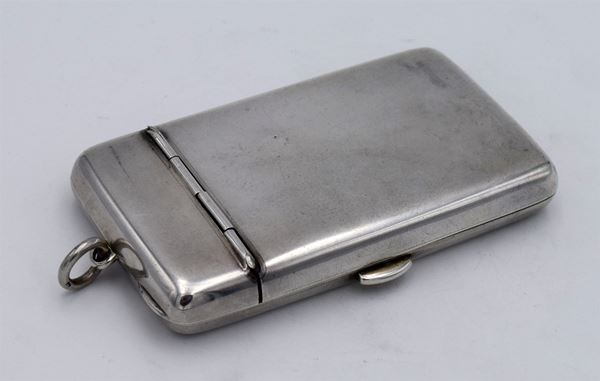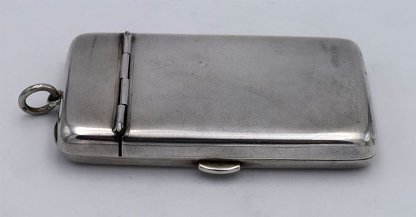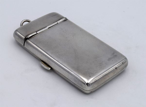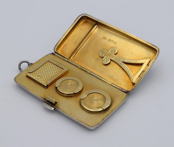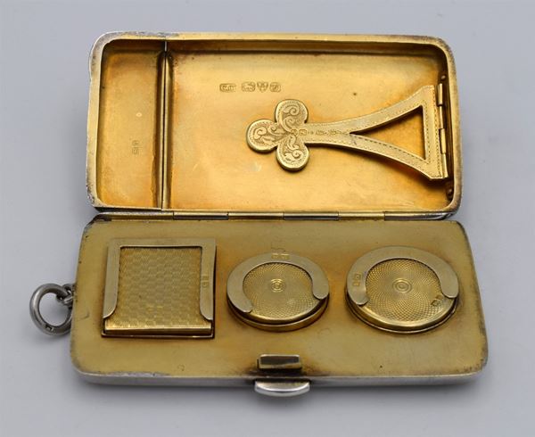 1907 - Chester - Scatola rettangolare ad angoli smussati con doppia apertura una superiore a soffietto e una centrale a molla (tasto a pressione) - interno dorato con da un lato molletta ferma carte e dall'altro 3 distributori per francobolli mezze sterline e sterline - bellissima
