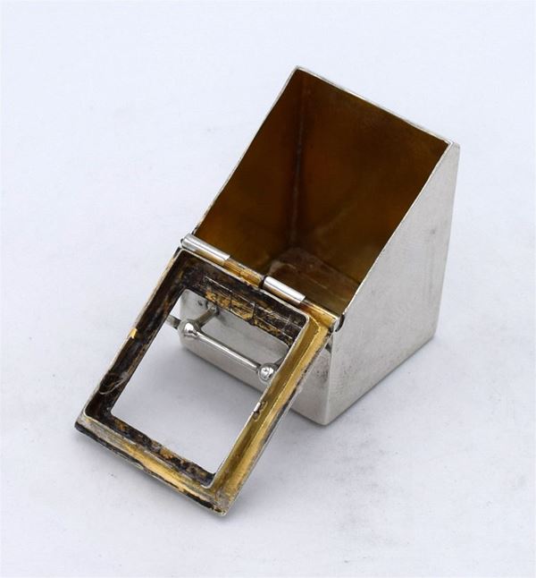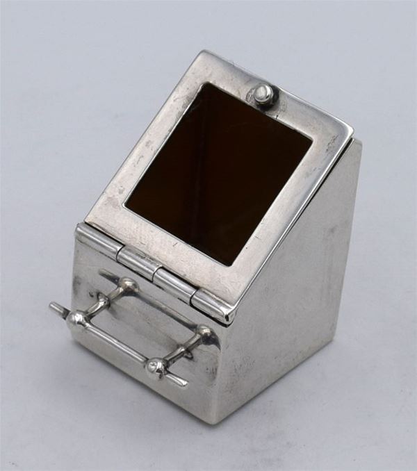 1908 - Chester - Splendida scatola modellata a forma di cassetta per carbone con singola apertura con finestra (no vetro) sul davanti - interno dorato - molto bella
