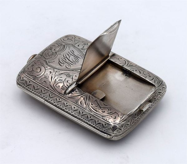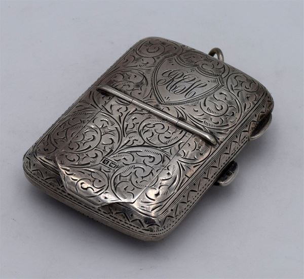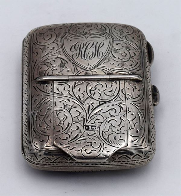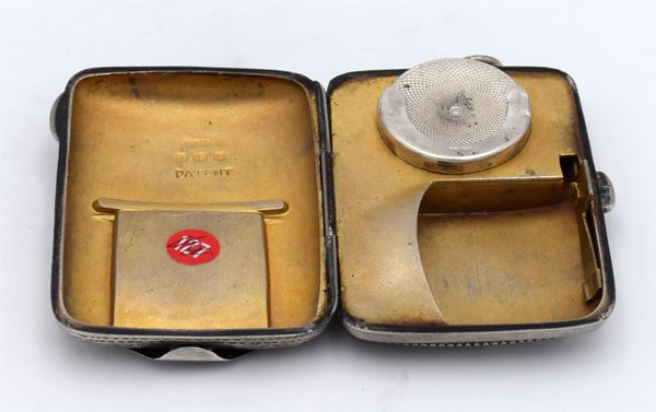 1909 - Birmingham - Piccola scatola incisa sul lato superiore con scomparto "nascosto" porta francobolli - apertura a cerniera con interno dorato e 1 spazio per i francobolli e uno per sterline - molto bella