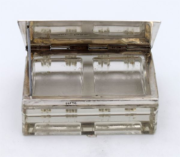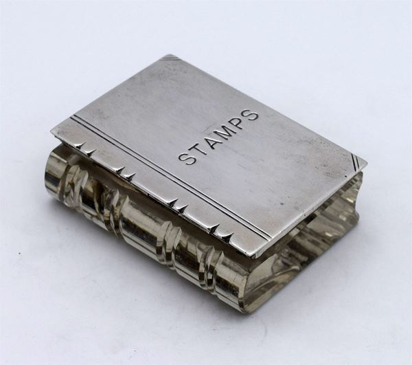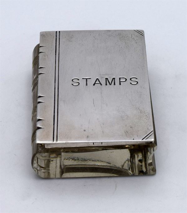 1911 - Chester - Bellissima scatola in vetro modellato a forma di libro con coperchio a molla in argento con incisione "STAMPS" - all'interno 2 spazi a scivolo - molto bella e insolita