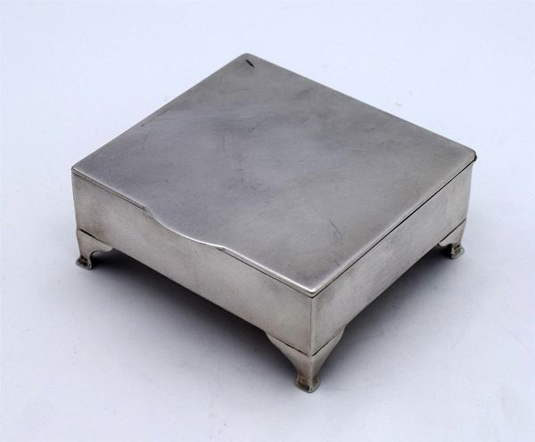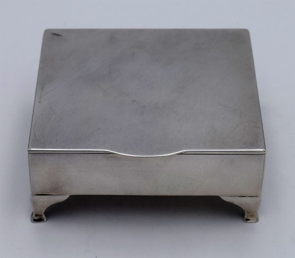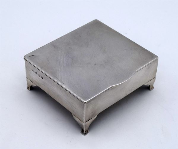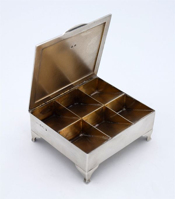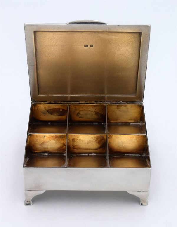 1922 - Birmingham - Elegante scatola modellata a forma di mobile con 4 piedini lavorati - coperchio a cerniera con all'interno 6 spazi concavi dorati - molto bella e rara