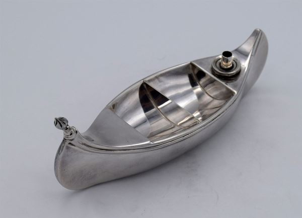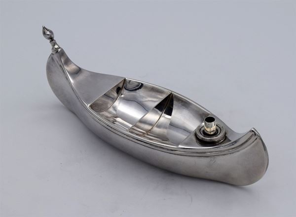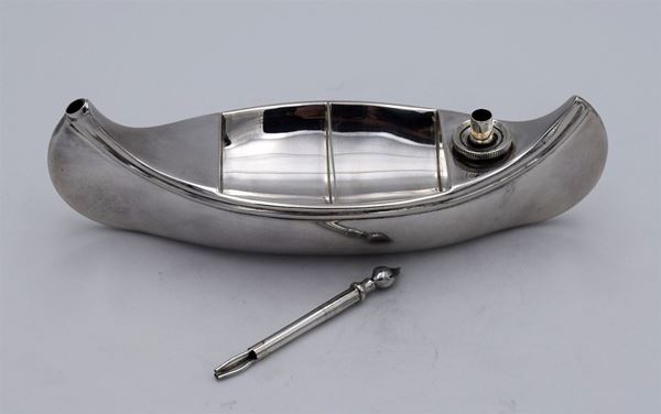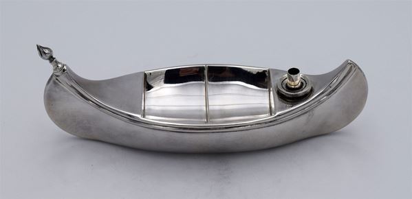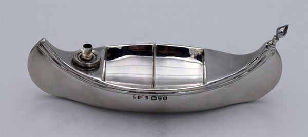 1926 - Chester - Splendida scatola modellata a forma di barchetta con 2 scomparti a scivolo centrali - spazio per pennino a prua e piccola pinzetta estraibile a poppa - bellissima e insolita