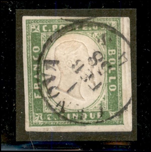 1858 - 5 cent verde giallo chiaro (13Af) - Genova 1.2.58