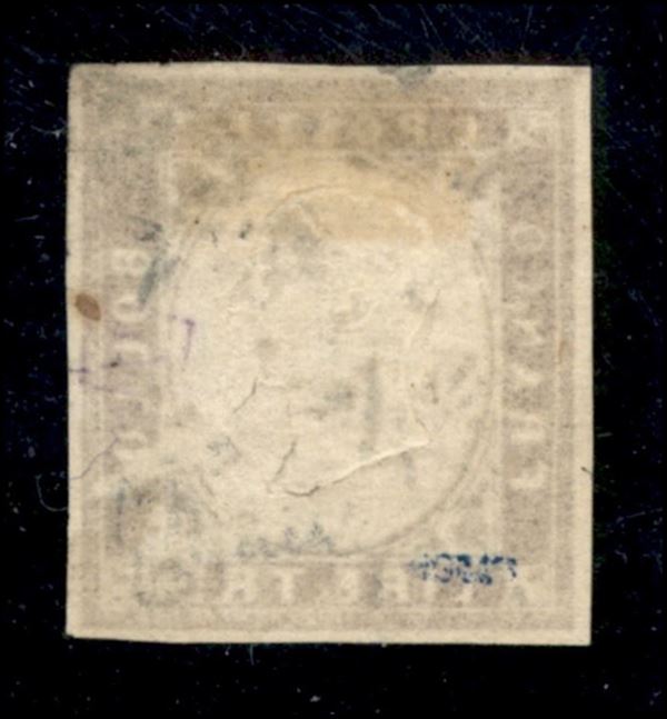 1861 - 3 lire (18A - Sardegna) usato a Messina - punti chiari