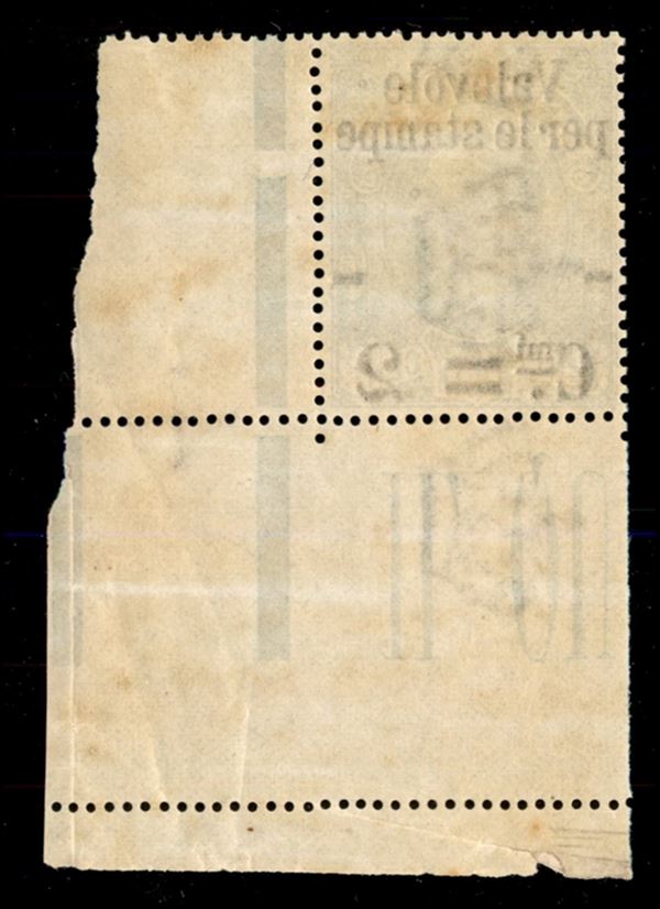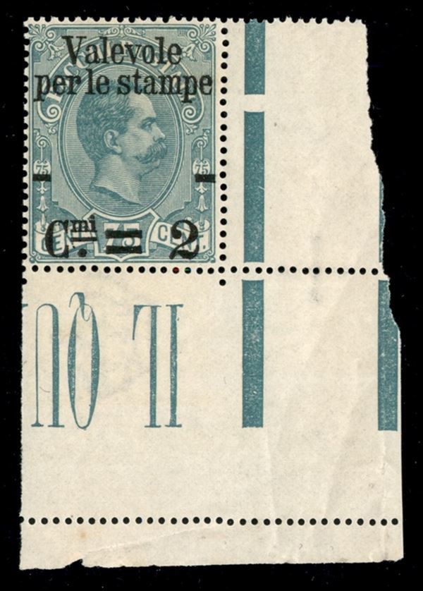 1890 - 2 cent su 75 (53 varietà bai) angolo di foglio - parziale doppia linea di colore laterale - gomma integra - non catalogato