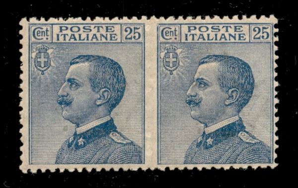 1908 - 25 cent Michetti (83l) - coppia orizzontale non dentellata al centro - gomma integra - cert. AG