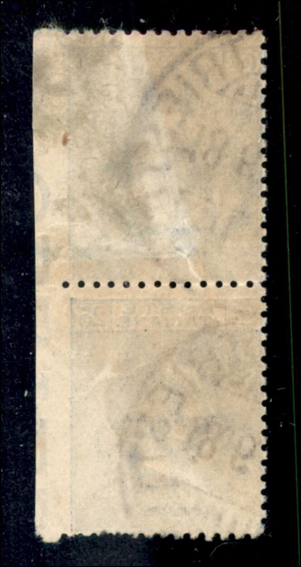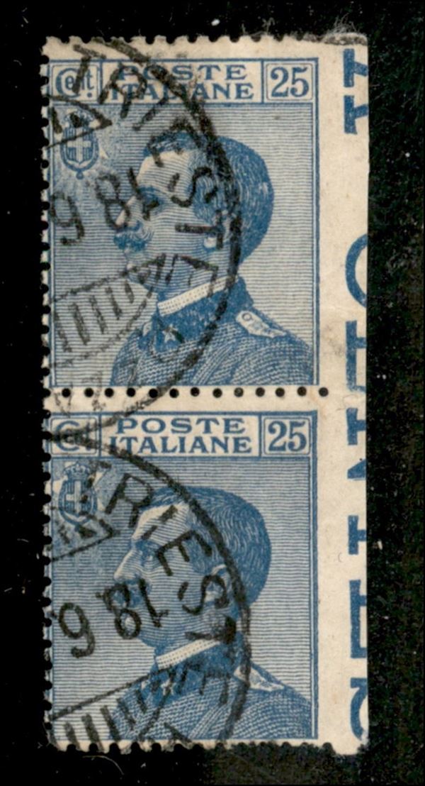 1908 - Michetti 25 cent coppia verticale non dentellata a destra con bordo foglio (83i) usata